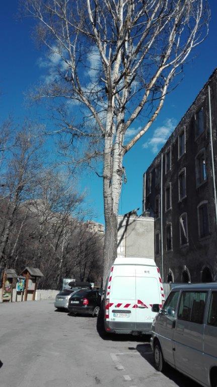 En effet, sur le parking adjacent, un grand arbre fragilisé par l'incendie de la Schappe menace de s'effondrer.