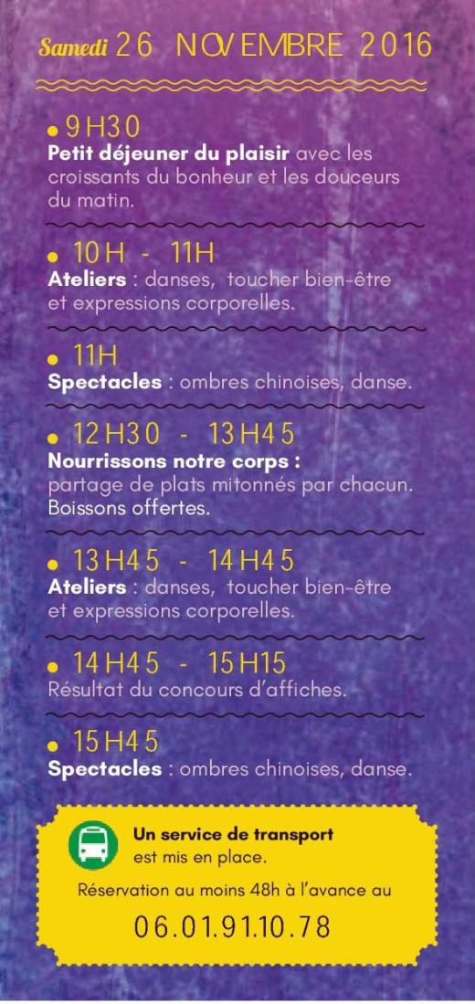 En tout début d’après-midi, les structures partenaires de l’événement se verront décerner des prix pour leur participation au concours de l’affiche de « Art & Handicap ». La journée sera ponctuée de spectacles d'ombres chinoises et de danse.