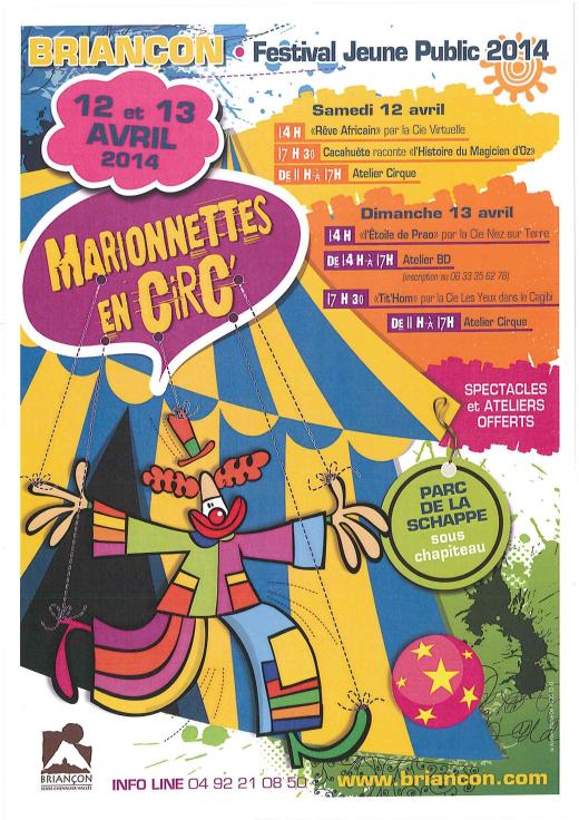 En ouverture des vacances de Pâques, l’Office de Tourisme de Briançon propose un Festival Jeune Public, gratuit, dédié aux marionnettes et aux arts du cirque. Cette année, ce festival se déroulera sous chapiteau au parc de la Schappe.