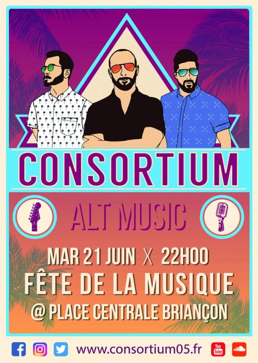 Ce mardi 21 juin 2016 à 22h00, à l’occasion de la fête de la musique, organisée par « Les enseignes de Briançon » et la ville de Briançon, le groupe Consortium Alt Music se produira sur la scène de la place centrale. Le trio fait son retour, après trois ans d’absence sur cet événement, pour animer la nuit la plus courte de l’année et accompagner le solstice d’été sur un mode 100% hits 100% live 100% festif ! Le groupe haut-alpin profitera de cette soirée populaire pour dévoiler de nouveaux titres au public et lancer sa programmation estivale.