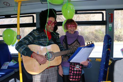 Embarqués à bord d’un bus, les passagers ont découvert les améliorations apportées à leur service de transports en commun, en mouvement et en musique, avec la complicité des joyeux drilles de la compagnie « Après la Pluie ».
