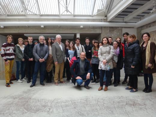 Ce mardi 29 mars 2016, Gérard Fromm, maire de Briançon et Alain Prorel, conseiller municipal délégué aux relations avec les collèges et le lycée,  ont reçu au centre d’art contemporain l’équipe franco-roumaine de MATLAN*.  Unissant des élèves du lycée d’Altitude de Briançon et du Colegiul National Emil Racovita de Cluj, ce projet européen d’échanges scientifiques et linguistiques est encadré par des enseignants des deux nations,  dont Hubert Proal, animateur depuis 18 ans des ateliers MATh.en.JEAN’S de Briançon.