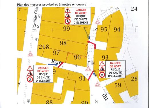 Le secteur interdit au stationnement et à la circulation piétonne et automobile est délimité par les traits rouges sur le plan ci-dessous.