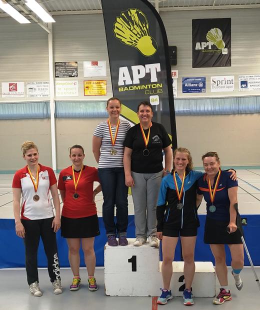 Lors du Championnat Régional Vétérans, à Apt, Anna Boussellier et Pascale Duvey se sont hissées en double sur la plus haute marche. Le parcours est dans l’ensemble maitrisé, quelques sets sont plus accrochés que d’autres mais les deux partenaires gardent jusqu’en demi-finale une certaine marge de manœuvre. A ce stade, Anna et Pascale doivent hausser leur niveau dans la seconde manche (21-12 21-19). Elles démarrent ensuite la finale dans les meilleures dispositions et prennent largement l’initiative dans les échanges. Alors qu’elles mènent 12-4 dans la première manche, l’une de leurs adversaires se blesse. Pascale et Anna sont alors titrées.