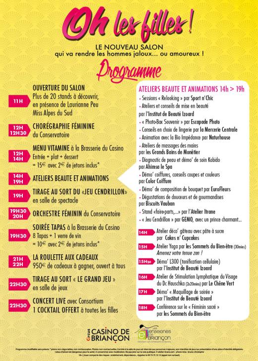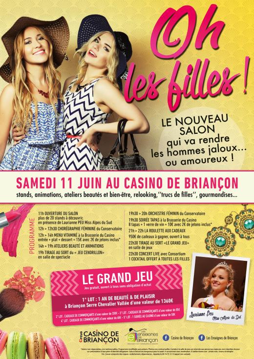 Le samedi 11 juin 2016, le public féminin (mais pas que !) a rendez-vous au Circus Casino de Briançon pour le salon « Oh les Filles ! », le nouvel évènement concocté par le Casino de jeux et Les Enseignes de Briançon.