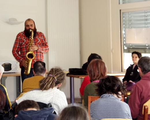 Vendredi 18 janvier à 13h30, Raphaël Imbert, saxophoniste et compositeur, présent à Briançon dans le cadre d’Altitude jazz festival est venu faire un concert pour les résidents et le personnel du Foyer de la Fondation Seltzer. Un instant magique...