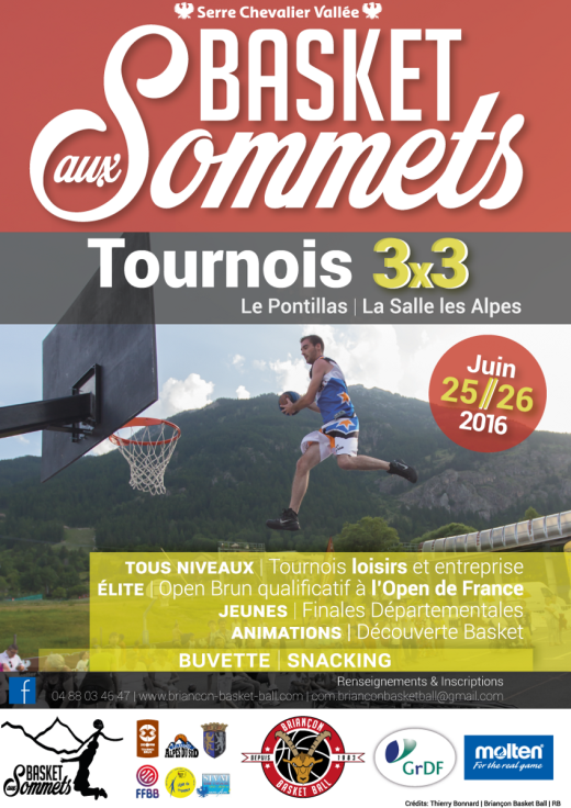 Après une édition 2015 réussie, avec en point d'orgue la venue des Barjots Dunkers, le Briançon Basket Ball organisera pour la 4ème année consécutive Basket aux Sommets à Serre Chevalier Vallée Briançon les 25 et 26 juin 2016 au Pontillas – Villeneuve.
