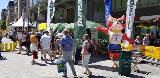 En lien avec l'Assemblée des Départements de France, l'Agence de Développement et ses partenaires ont hissé les couleurs des Hautes-Alpes sur la Fan Park de la place de Brouckère, lieu stratégique du Grand Départ.
