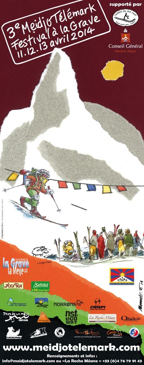 En quelques mots, le festival a pour but de mettre en avant le côté artisanal, local, respectueux de l’environnement, afin que chacun puisse prendre conscience qu’à son niveau, il peut agir et accorder ses actions à ses valeurs qui sont les nôtres. L’esprit convivial, authentique et sportif ont trouvé leur place, tout comme les participants, qui sont venus deux fois plus nombreux sur la deuxième édition. Ces traits de personnalité du festival s’articulent évidemment autour du ski de télémark (course classique la plus haute du monde !!) et de la haute montagne, pour en faire une fête unique en son genre ! Le Télémark, une forme de ski historique, le talon libre permettant naturellement de se déplacer. On estime son apparition à 1880. Cette pratique est en pleine évolution depuis les années 1990 et trouve chaque année de nouveaux adeptes de la génuflexion. La Grave – La Meije, ski sauvage sur 2150m de dénivelé et un environnement glaciaire exceptionnel son ici au premier plan, sous l’oeil bienveillant du Grand Pic de la Meije (3983m) Inscriptions et Infos supplémentaires : http://www.meidjotelemark.com