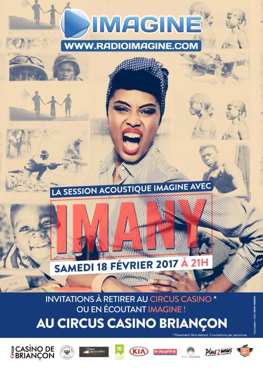 Pour cette nouvelle année, votre radio a dans sa liste de vœux le souhait d'organiser encore plus d'événements musicaux ! « C'est un travail d'équipe, Nous avons la chance d'avoir des partenaires comme des stations de ski telles que Serre-Chevalier ou Montgenèvre, le Circus Casino qui souhaite développer ses animations et différents partenaires privés. Nous contactons les maisons de disques ou agents et organisons l’événement et ces partenaires assurent la partie logistique. C'est un "travail d'image" pour la radio et nos partenaires » précise Maxime Gallice, président de la radio. « Nous invitons les artistes à passer quelques jours dans nos montagnes pour skier et déguster des raclettes en échange d'une prestation pour y inviter nos auditeurs et partenaires. » Et ça fonctionne plutôt bien puisque les Cats On Trees, Rose, Vianney, Michael Jones, Ycare, Corson, Vitaa... sont déjà passés dans le Briançonnais. Pour 2017, la liste s'allonge avec d'autres artistes qui viendront passer quelques jours à Briançon Serre-Chevalier et offrir leur talent lors de nouvelles « Sessions Acoustiques Imagine » : Vianney qui revient le jeudi 12 janvier à 20h30 (COMPLET) et Imany sera présente le samedi 18 février au Circus Casino de Briançon Serre-Chevalier. D'autres artistes devraient se confirmer dans les prochaines semaines...