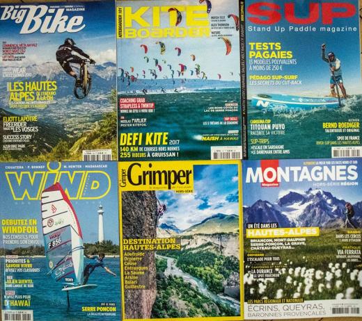 Pas moins de six publications pour lancer la saison estivale dans les Hautes-Alpes ! "Grimper Magazine", "Montagnes Magazine", "Big Bike", "Sup magazine (Stand Up Paddle)", "Kite Boarder" et "Wind magazine", l’Agence de Développement des Hautes-Alpes et les éditions Nivéales se sont associés pour un partenariat presse autour de la destination Hautes-Alpes.
