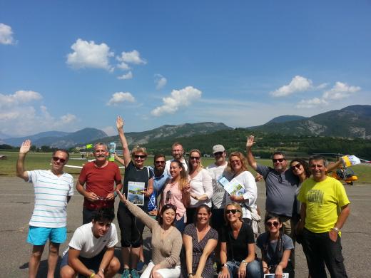 Photo : Le groupe des voyagistes étrangers réunis sur le territoire de Serre-Ponçon et sur le site de l’aérodrome de Gap-Tallard à la découverte des nombreuses offres liées aux activités de pleine nature dans les Hautes-Alpes.
