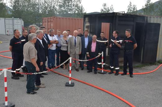 Jean-Yves DUSSERRE a ensuite invité le Directeur départemental, le lieutenant-colonel MOREAU, à faire la présentation générale du site aux nouveaux administrateurs. La visite a débuté par le plateau technique de formation où se déroulait une formation à la maîtrise des feux réels. Elle s’est poursuivie par une présentation de la filière logistique qui fournit l’habillement et le petit matériel aux 36 unités du département. Les administrateurs ont été particulièrement intéressés par la présentation des véhicules associée à une explication des missions.