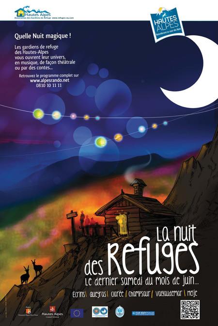 La “Nuit des Refuges” est une initiative du Conseil Général, du Comité Départemental du Tourisme des Hautes-Alpes et de l'association des Gardiens de refuges des Hautes-Alpes, en partenariat avec le Parc National des Ecrins, le Parc Naturel Régional du Queyras, le Réseau Education Environnement 05, le Club Alpin Français, et les professionnels de la montagne.