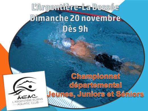 Ce dimanche 20 novembre 2016, le club de natation L’Argentière Ecrins Aquatic Club organise et accueille le Championnat départemental Jeunes, Juniors et Séniors, à la piscine de L’Argentière-La Bessée.