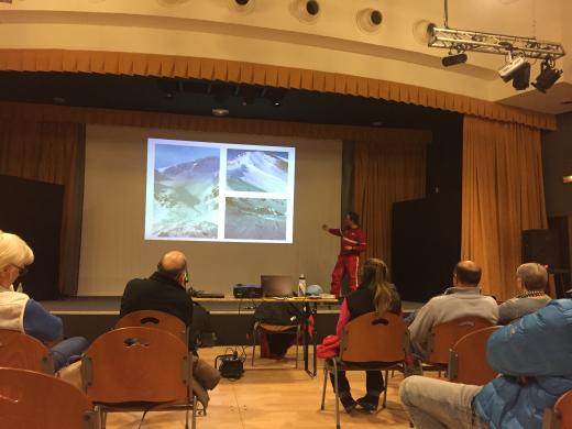 Hier soir, une trentaine d'habitants de la station, touristes, skieurs et non skieurs intéressés étaient présents pour la conférence. Ils ont pu découvrir l’utilisation de D.V.A (détecteur de victime d’avalanche), comment savoir si l'on s'engage sur une pente à risque et aussi échangé autour des différents cas appliqués à nos versants.