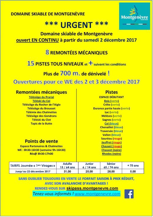 Le tarif journée passe en mode « 1er virage » soit 31 euros de 15 ans à 64 ans , 25 euros de 6 à 14 ans , 28 euros 65 à 74 ans et 5 euros pour les +75 ans.