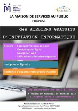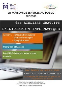 Dès février, la Maison de services au public du Pays des Ecrins propose des ateliers collectifs hebdomadaires d’initiation aux TIC, encadrés par la conseillère Hélène AILLAUD. Ces ateliers d’une durée d’1h ou 2h par semaine sont gratuits et organisés à la MSAP de L’Argentière et l’Agence postale intercommunale de Pelvoux (Point MSAP). L’objectif de cette action est d’une part, de favoriser la découverte des Technologies de l'Information et de la Communication en session collective, et d’autre part, de faciliter la prise d’autonomie individuelle en proposant un accompagnement progressif vers les TIC. En fonction de la demande des usagers, les sessions de formation comprendront des ateliers sur le traitement de texte et tableur sur logiciel libre OpenOffice.org, la création et l’utilisation d’une adresse e-mail, l’envoi / réception de messages avec pièces jointes et enregistrement de celles-ci, la découverte de la navigation sur le Web, la découverte des démarches en ligne (Pôle Emploi, CESU, CAF, impôts), l’utilisation de Facebook et réseaux sociaux et la prise en main de tablettes numériques et smartphone. Elles se dérouleront dans les 2 salles multimédia labellisées ERIC permettant d’accueillir six stagiaires autour de postes informatiques. - Ateliers MSAP de l’Argentière-La Bessée : les jeudis de 8h30 à 9h30 à partir du 16 février 2017- Ateliers Point MSAP de Pelvoux : les mercredis de 9h30 à 11h30 à partir du 15 février 2017 Les inscriptions sont gratuites et obligatoires à la Maison de services au public de l’Argentière-La Bessée au 04 92 23 06 21 ou par mail à rsp@cc-paysdesecrins.com