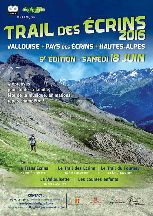 Le Trail des Écrins, 9ème édition, est organisé par l’Association Ecrins Trail Running et est proposé sur une journée au cœur du Pays des Écrins ; cette épreuve ravira les mordus de la discipline dans des décors somptueux.