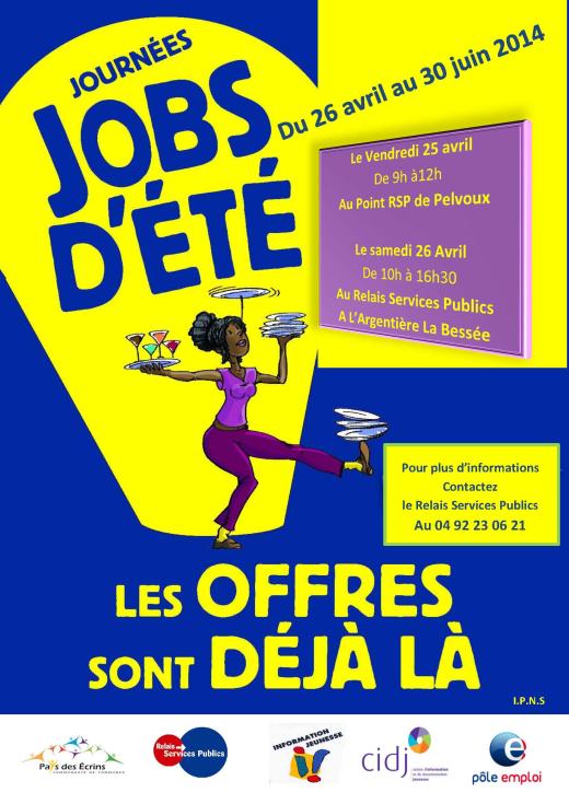 Comme chaque année, la Communauté de Communes du Pays des Ecrins organise les « journées jobs d’été » dans les locaux du Relais Services Publics et pour la troisième année au Point RSP de Pelvoux dans les locaux de l’agence postale intercommunale.