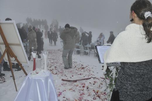 Originaires des Bouches du Rhône et gestionnaire d’un centre équestre, les jeunes mariés ont du s’acclimater à prêt de 2000m d’altitude pour se dire oui d’un seul trait, sans une respiration qui aurait pu les faire douter compte tenu des conditions un peu extrêmes. Le manque d’oxygène et la neige qui était au rendez vous, ne les a pas empêché de vivre ce moment de façon ludique et décalé avec une joie extrême sur les pistes du domaine de la forêt blanche.