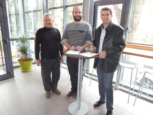 Photo : Signature de la convention de mandat à Luceo avec Cyrille Drujon d’Astros (au centre), Michel Frison (à droite) et Jean Robert Richard (à gauche)