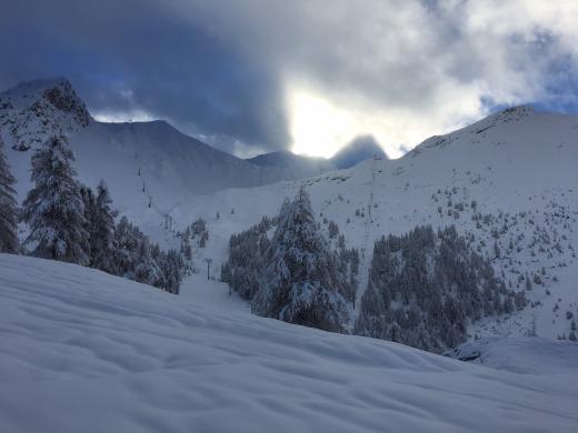 Déjà 70 cm de neige naturelle à 2 800 m d'altitude et 35 cm à 2 100 m, sans compter les chutes de neige d'aujourd'hui et celles annoncées les jours prochains.