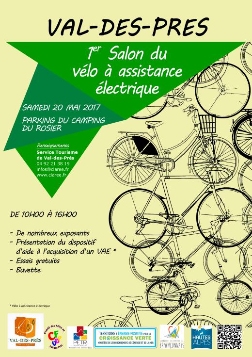 Le samedi 20 mai 2017, de 10h00 à 16h00, la Mairie et le Comité des Fêtes de Val-des-Prés organise le 1er Salon du vélo à assistance électrique, afin de promouvoir ce mode de transport et cette activité de loisirs en plein essor.