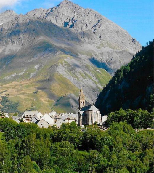 Un édifice aux vaste proportions et au clocher élancé, image emblématique de la vallée de la Haute-Romanche, reconstruit en 1860 en tuf du Lautaret dans le style néo-gothique.